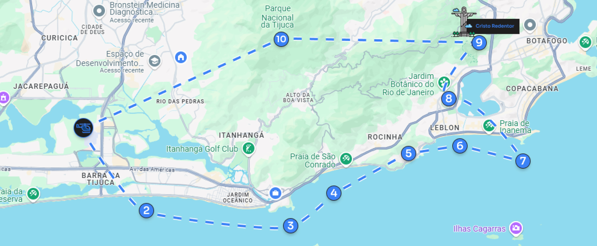 Um voo panorâmico que percorre as principais praias, montanhas e o Cristo Redentor. Uma forma rápida e incrível de ver o Rio de Janeiro do alto, com conforto e vistas espetaculares.